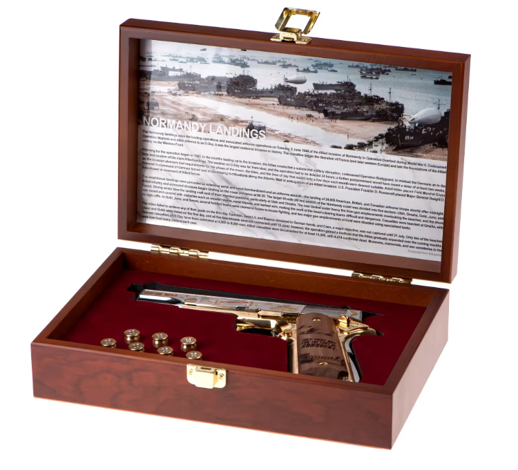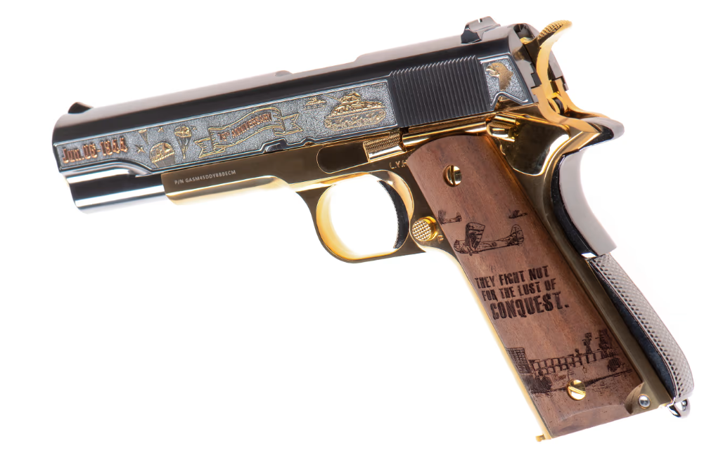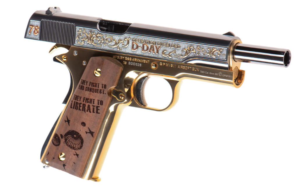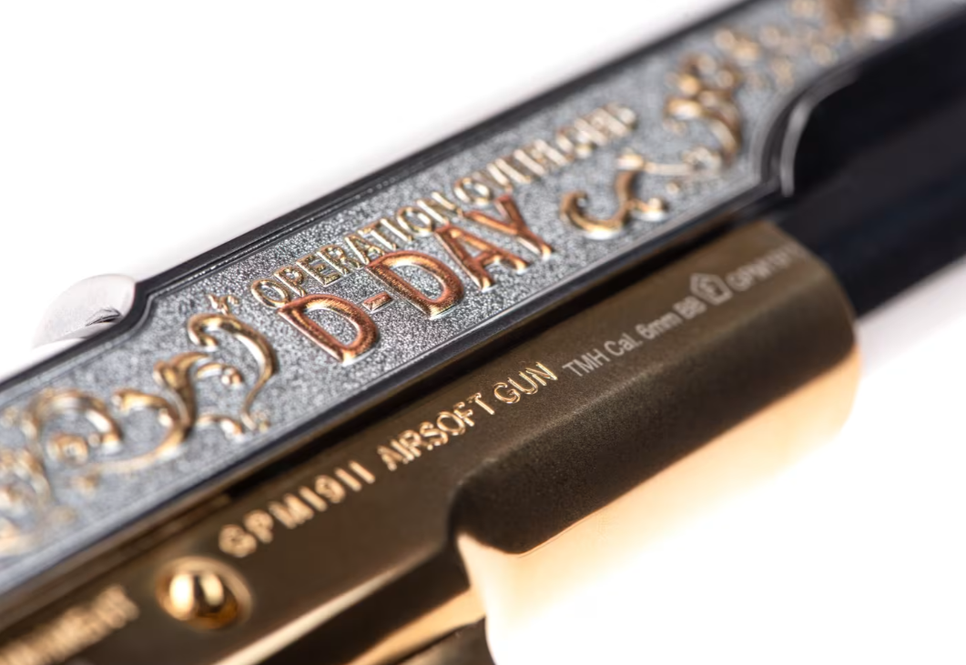 De G&G Armament GPM1911 D-Day Limited Version is een exclusief gas blowback airsoftpistool dat een eerbetoon brengt aan de historische D-Day landing in Normandië. Deze limited edition combineert klassieke M1911-vormgeving met hoogwaardige materialen en een unieke afwerking, waardoor het model zowel technisch als visueel een absolute blikvanger is.