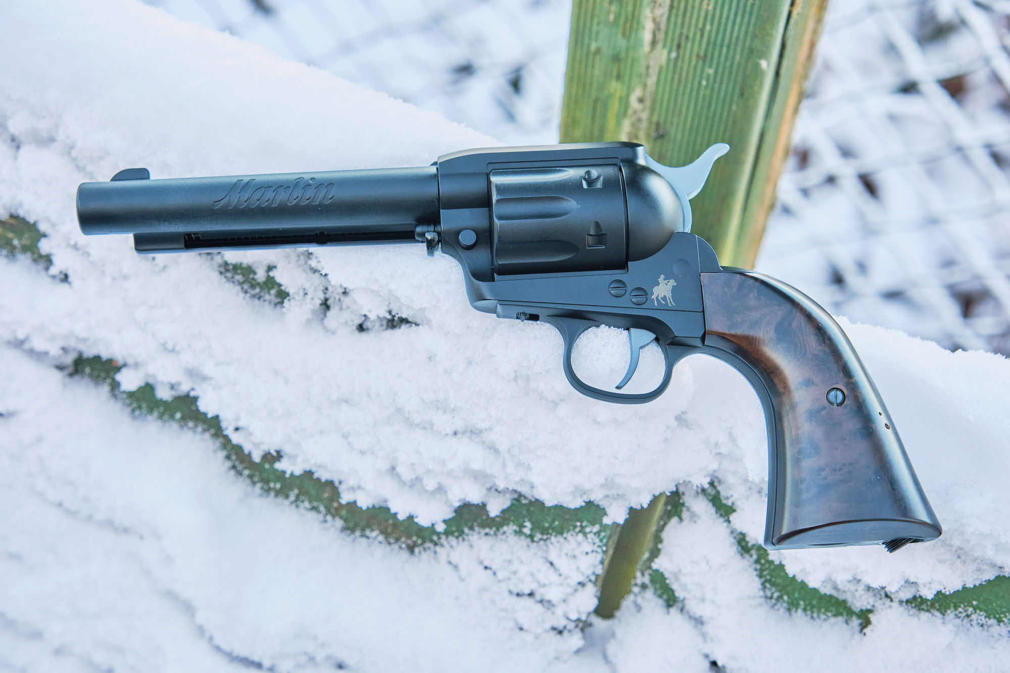Klassieke westernlooks gecombineerd met moderne CO₂-techniek: de Umarex Marlin Revolver is een stijlvol en gebruiksvriendelijk 6 mm airsoft revolvermodel voor recreatief schieten. De revolver werkt op een 12 g CO₂-patroon in de greep en vuurt 6 mm BB’s af vanuit een buisvormig magazijn onder de loop met plaats voor 13 kogels.