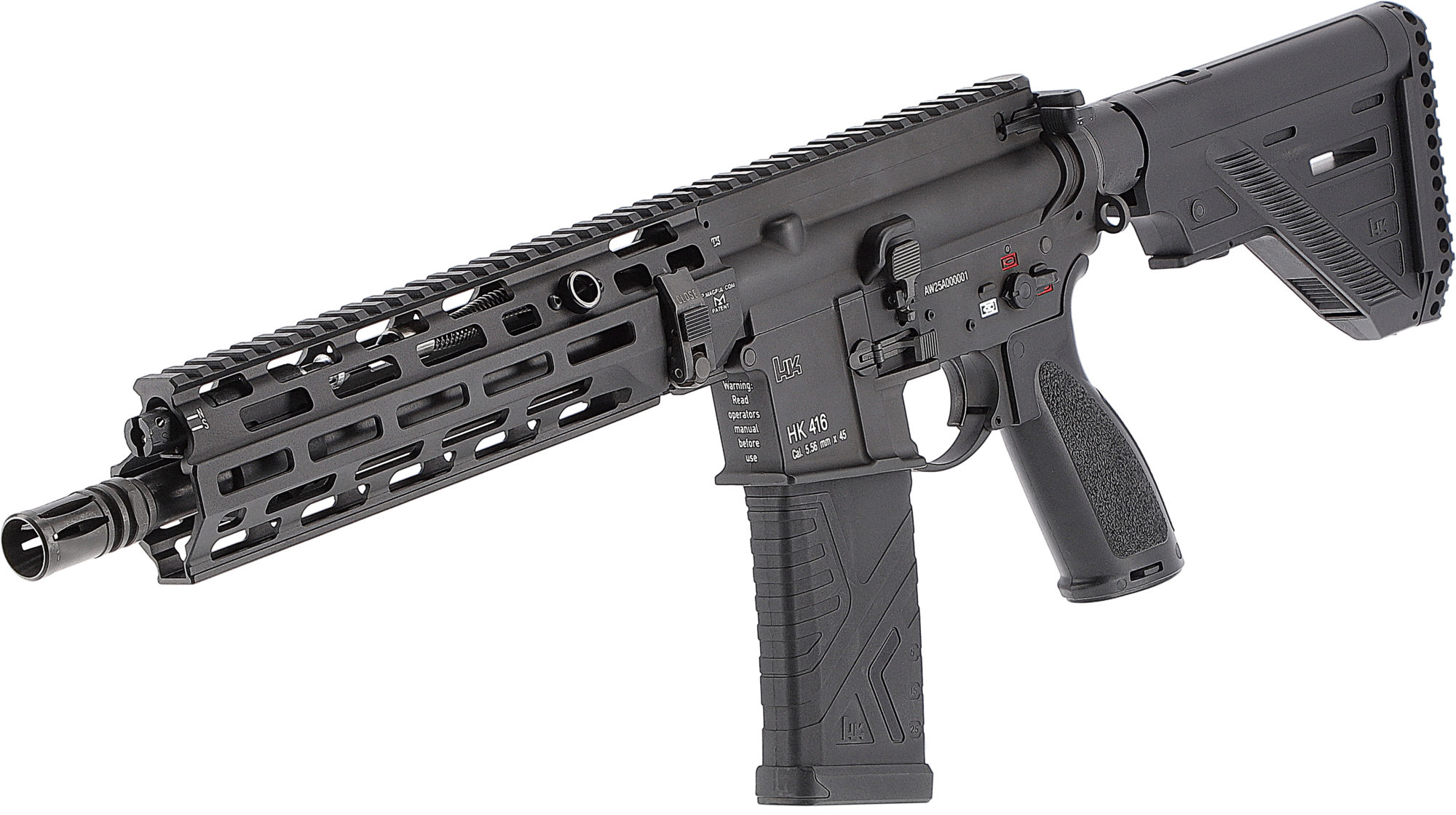 Die HK416 A5 ist eine hochklassige Gas-Airsoft-Replik in Vollmetallbauweise, die speziell für anspruchsvolle Spieler entwickelt wurde und keine Wünsche offenlässt. Der M-LOK Vorderschaft bietet flexible Montageoptionen für Zubehör, während die Picatinny-Toprail die Befestigung von Optiken ermöglicht. Der Pistolengriff ist AR-kompatibel und die Mil-Spec Buffer Tube nimmt standardisierte AR-Schäfte auf. Beidseitig angeordnete Bedienelemente, ein einstellbares Shoot-Up und das linksgewindige M14x1-Mündungsgewinde runden die Premium-Ausstattung ab. Geliefert wird die Waffe ohne mechanische Visierung.