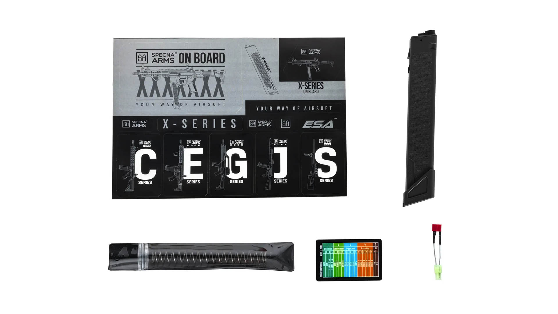 De SA-FX02 is vervaardigd uit glasvezelversterkt polymeer, aluminium, zink en staal, wat zorgt voor een lichtgewicht maar duurzame constructie. Met compatibiliteit voor standaard M4-accessoires en magazijnen en het ESA™ snelwisselsysteem kan de vuurkracht eenvoudig worden aangepast aan elke situatie. Voor extra precisie beschikt het wapen over een TDC Magnus™ Rotary Hop-Up en Helium™ Flat Hop.