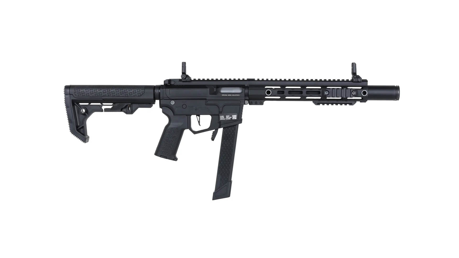 De Specna Arms SA-FX02 FLEX™ HAL ETU Gen.2 is een hoogwaardige airsoft-karabijn die uitblinkt in precisie, prestaties en modulariteit. Het wapen combineert een robuuste constructie met innovatief elektronisch ontwerp, waardoor het ideaal is voor dynamische CQB-scenario’s en veldgebruik. Dankzij het HAL™ ETU/MOSFET-systeem reageert de karabijn sneller op commando’s en beschermt het de elektronica tegen overbelasting.