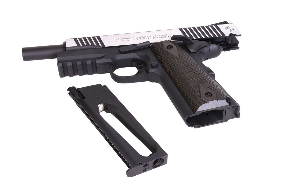 De Cybergun Colt 1911 Dual Tone combineert authentiek 1911‑design met moderne features: full‑metal constructie, verstelbare hop‑up, 17‑schots magazijn en een betrouwbaar CO₂‑blowback systeem. Perfect voor liefhebbers van klassieke replicas die ook technisch comfort en modulariteit willen.