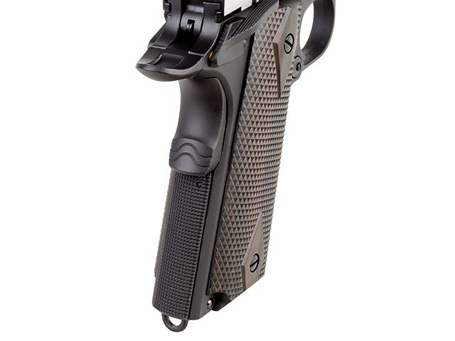 Dit model is vervaardigd met een solide metalen frame en schuif, wat zorgt voor een realistisch gewicht (±900 g) en een robuuste voelbare afwerking. De polymeer greeppanelen geven extra grip en het model beschikt over een geïntegreerde Picatinny‑rail voor een lamp of laser. Het verstelbare BAX‑systeem optimaliseert het traject van de BB’s; combineer dit met de verstelbare hop‑up voor maximale nauwkeurigheid op afstand. De extra handpalmbeveiliging verhoogt de veilige bediening en de eenvoudige demontage maakt onderhoud en schoonmaak moeiteloos.