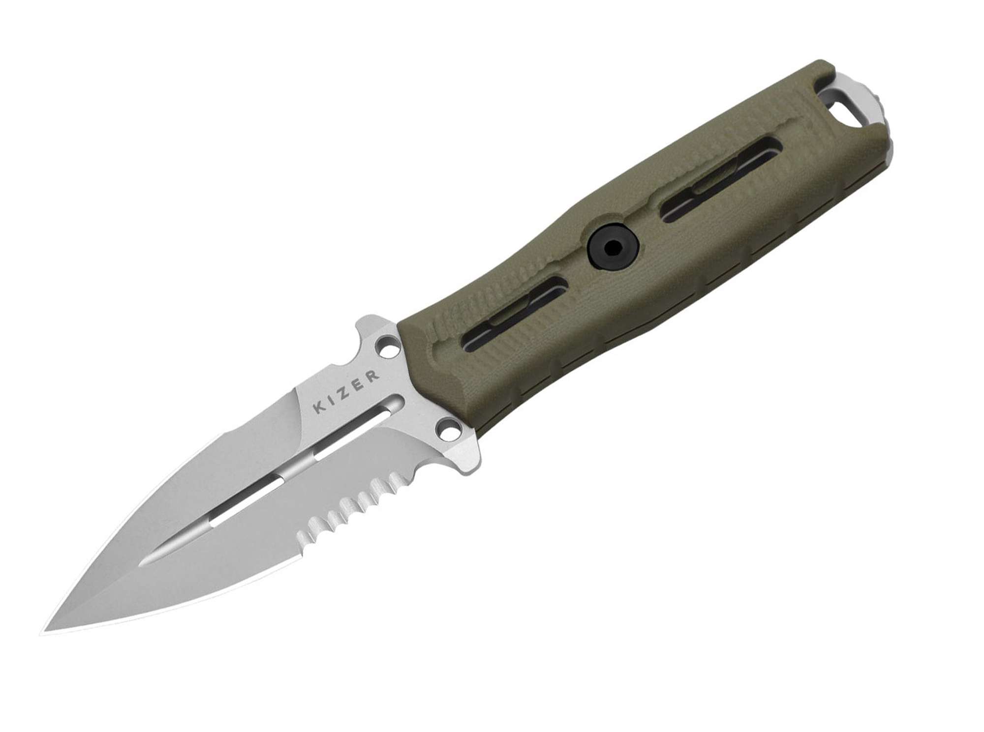 De Kizer NORCROSS Nitro-V Green G10 Single Combo Edge is een vaststaand mes dat kracht, functionaliteit en betrouwbaarheid combineert in één hoogwaardige tool. Ontworpen voor veeleisende gebruikers biedt dit model indrukwekkende prestaties dankzij het gedeeltelijk gekartelde spearpoint-lemmet van Nitro-V staal. Dit staal staat bekend om zijn uitstekende scherptebehoud, taaiheid en corrosiebestendigheid – ideaal voor zowel precisiewerk als intensieve snijtaken.