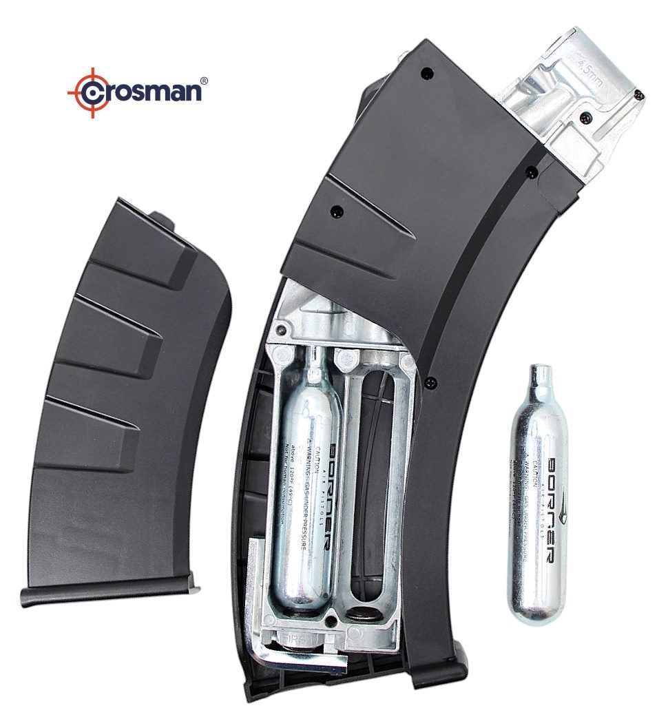 Dit originele vervangingsmagazijn voor de Crosman AK1 is ontworpen voor maximale betrouwbaarheid en gebruiksgemak. Het magazijn biedt ruimte aan twee 12 g CO₂-patronen en heeft een schotcapaciteit van 28 BB’s, waardoor je langer kunt doorschieten zonder onderbreking.