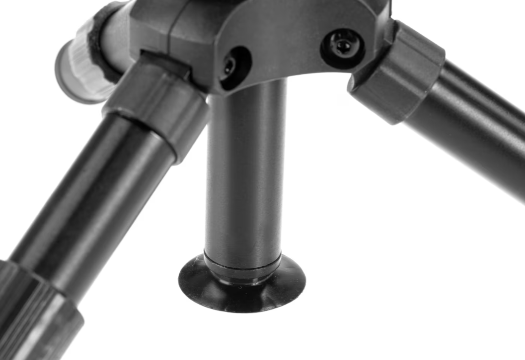De tripod beschikt over een in hoogte verstelbare centrale buis die varieert van 15 cm tot 24 cm, waardoor je eenvoudig de ideale schiethouding instelt. Aan de onderzijde bevindt zich een zuignap waarmee de tripod extra stevig kan worden vastgezet op vlakke oppervlakken. De bovenzijde van de centrale buis is voorzien van een V-vormige rubberen steun, speciaal ontworpen om je geweer veilig, zacht en slipvrij te ondersteunen.