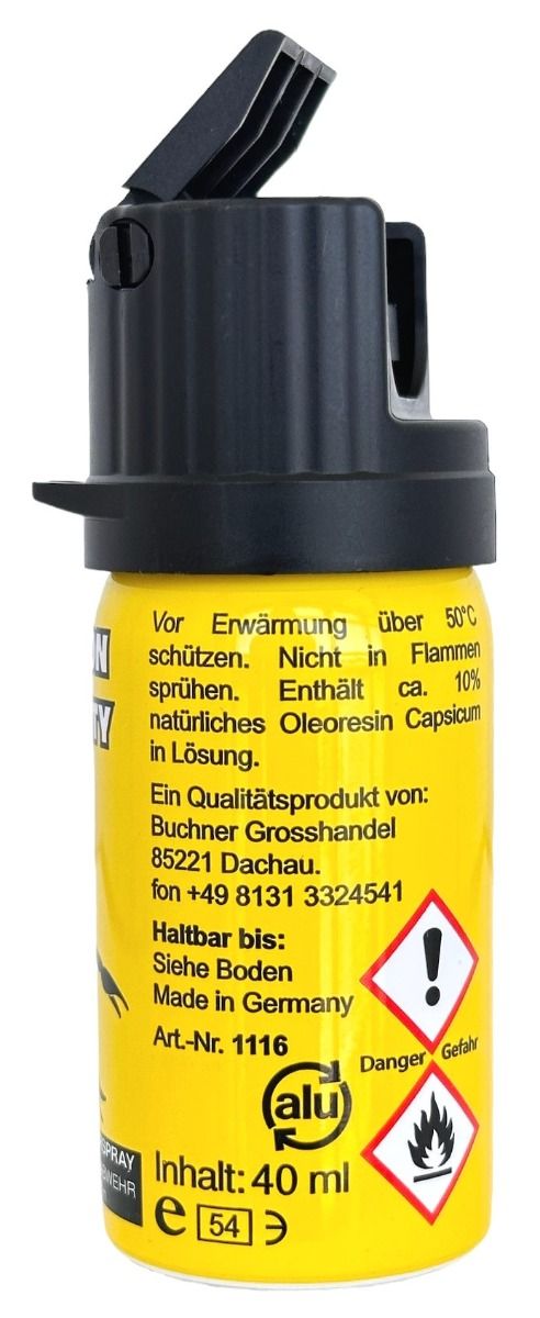Gebruik pepperspray uitsluitend volgens de voorschriften. Niet op mensen richten. Buiten bereik van kinderen bewaren. Lees altijd de veiligheidsinstructies zorgvuldig door.