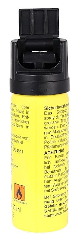 De Scorpion Pepperspray 50 ml biedt maximale bescherming in noodsituaties. Met een brede nevelstraal en een effectief bereik tot 3 meter creëert u een krachtige verdedigingszone tegen aanvallende dieren. Dankzij het grotere volume van 50 ml heeft u extra inhoud voor herhaald gebruik. De veerbelaste veiligheidsdop voorkomt onbedoeld activeren, waardoor de spray veilig en betrouwbaar mee te nemen is.